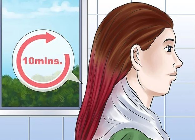 اجازه دهید رنگ روی موهایتان قرار گیرد. از دستور العمل های روی جعبه پیروی کنید تا مشخص شود که رنگ چه مدت باید روی موهایتان بماند. اجازه دهید به همان مقدار زمان توصیه شده رنگ روی موهایتان باقی بماند. از آنجایی که موهایتان دکلره شده است، احتمالا نیازی نباشد که رنگ بیش از ده دقیقه روی موهایتان بماند.