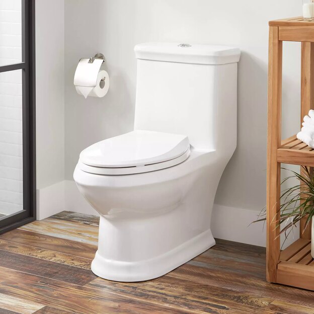 گرچه کاربرد توالت یک تکه یا دو تکه یکسان است اما هر دو مزایا و معایب خود را دارند. توالت های یک تکه به آسانی نصب و استفاده می شوند. با وجود یکسان بود سیستم آبکشی میزان آب مصرفی در این دو مدل یکسان است. در حالی که توالت یک تکه کمی گرانتر است، اما دوام بیشتری دارد. بنابراین برای حمام های کوچک مناسب است زیرا فضای کمتری را اشغال کرده و به زمین نزدیک تر است.