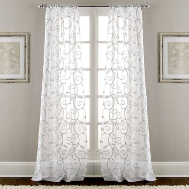 بر روی این پرده ی سفید، قلاب دوزی های گیج کننده ای از همان رنگ دیده میشود. این طرح بلند، خیره کننده است. داشتن این ظاهر مینیمالیستی زیبا در خانه بسیار زیباست.