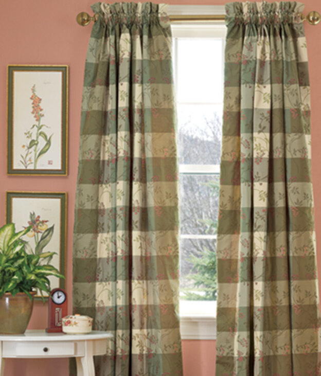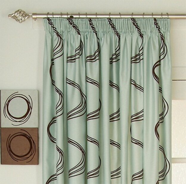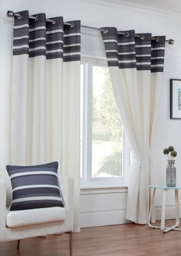 این مدل پرده قسمتی پاکتی شکل برای میل پرده دارد. میل پرده از داخل جایگاهی که دوخته شده عبور میکند. این پرده دو رنگ، با خطوط افقی با فاصله است. همچنین این پارچه چاپ های طرح گل کمرنگ دارد. پارچه ی ضخیم آن مانع تابش مستقیم نور خورشید به داخل میشود و قد آن بلندتر از پنجره است.