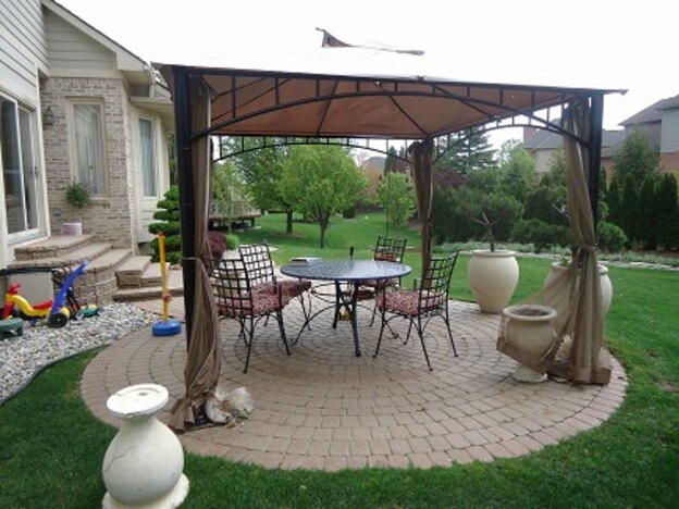 این طرح در حیاط خانه های بزرگ قابل استفاده است. افراد صبحانه یا عصرانه ی خود را در فضای باز میل میکنند. از این پرده ها برای تزئین حیاط استفاده میکنند و همچینین در جلوگیری از تابش مستقیم آفتاب نیز کاربرد دارد. این طرح روز شما را خواهد ساخت.