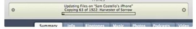 پس از همگام سازی تمام موارد در تلفن، موسیقی بر اساس تنظیمات بک آپ مورد استفاده قرار گرفته شده روی تلفن همگام سازی می شود. بر اساس تعداد آهنگ های همگام سازی شده، این مرحله ممکن است چند دقیقه تا چند ساعت طول بکشد. پس از اتمام همگام سازی موسیقی می توانید ادامه دهید.