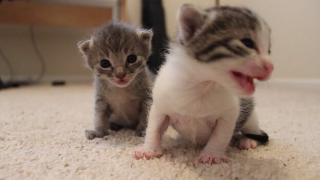 یک بچه گربه ی دو تا سه هفته ای هم همچنان باید هر دو تا سه ساعت یکبار تغذیه شده و حداقل نصف قاشق غذاخوری از فرمول ترکیبی شیر مخصوص را در هر وعده بخورد. اگر بچه گربه از مادرش شیر می خورد، باید با اندازه گیری وزن او متوجه شوید که آیا به اندازه ی کافی غذا می خورد یا خیر. بین روزهای 8 تا هجدهم باید وزن او تا حدود 10 انش افزایش یافته باشد و در این زمان او بلافاصله بعد از باز شدن چشمهایش شروع به خزیدن می کند.