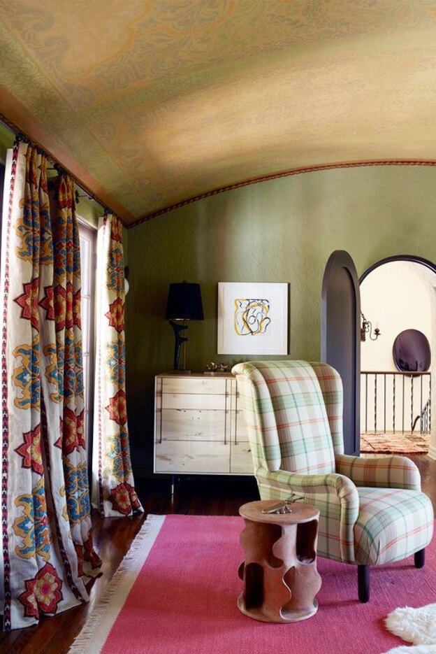 سقف ساده می تواند به زیبایی سقف های طرح دار باشد. گاهی اوقات چون ارتفاع سقف زیاد نیست مجبورید آن را ساده نگه دارید زیرا افزودن ابزار می تواند ارتفاع را کوتاهتر نشان دهد. همانطور که در تصویر میبینید در اینجا از یک رنگ ساده استفاده شده اما در صورت تمایل می توانید از رنگ گلاسه یا کاغذ دیواری طرح دار استفاده کنید.
