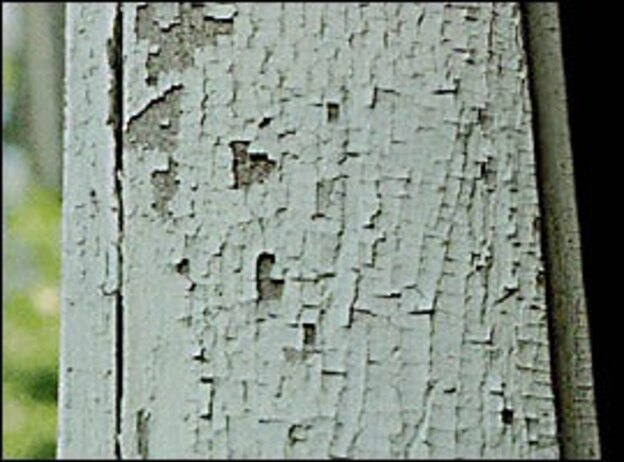 رنگی که جدا و پوسته شده است را بردارید و سمباده بکشید تا دندانه دار شود. اگر چندین لایه از رنگ پوسته پوسته می شود، شاید لازم باشد بتونه کاری شود. چوب خام را با پرایمر بپوشانید و سپس دوباره رنگ بزنید. از پرایمر و رنگ با کیفیت استفاده کنید تا این مشکل دوباره بروز پیدا نکند.