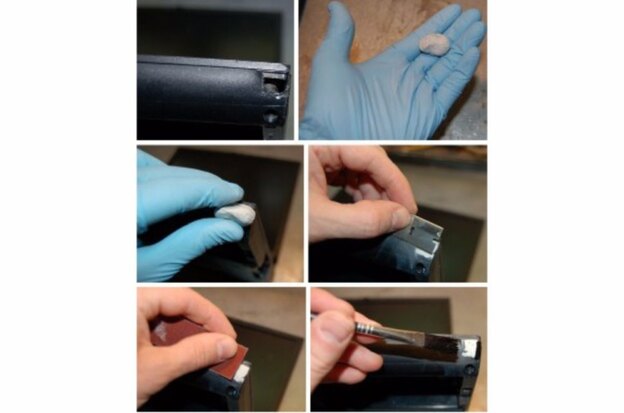 بسیاری از تعمیرات خانگی در همین جا متوقف می شوند و از ترمیم آن میتوان به عنوان نشان افتخار در آغاز یک مکالمه در سفرهای جاده استفاده کرد. من دوست دارم این کار را کمی تکمیل تر را انجام دهم ، بنابراین اپوکسی را با کاغذ سنباده 150 و سپس 220 گرم صاف میکنم.سپس سنباده ی نهایی را با کاغذ سنباده ی 2000 که کمی مرطوب است برای از بین بردن هر گونه ناصافی انجام می دهم.