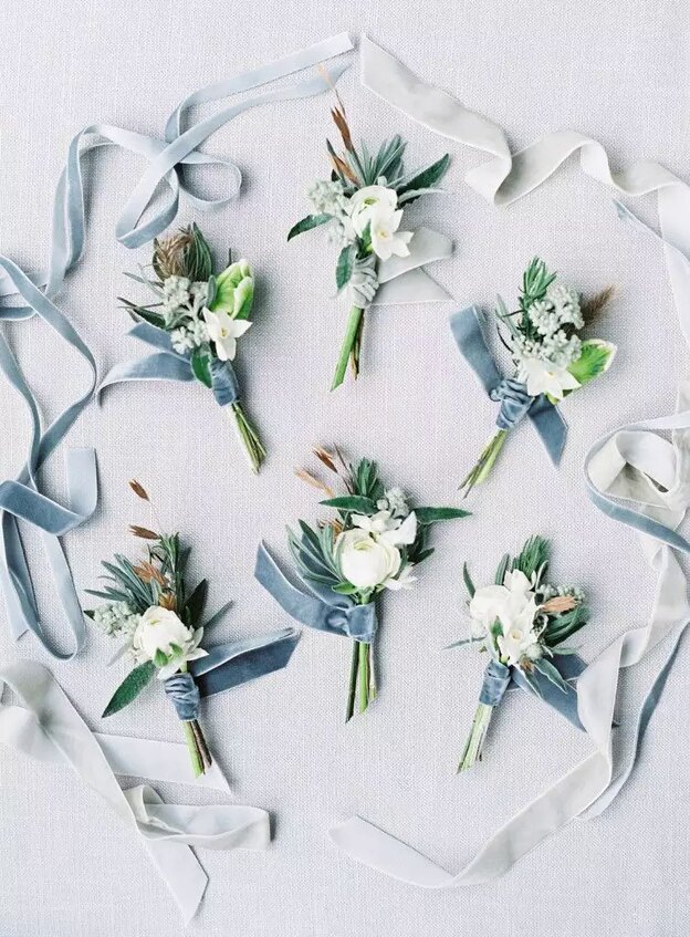 به لطف بازگشت مخمل به بازار مد، دنیای فشن و عروسی ها رسما با هم ترکیب شده است. تا اینجای کار دیدیم که مخمل در کمربند ها، لباس ساقدوش های عروس، پاپیون یقه آقایان، کت و شلوار، و به عنوان راهی برای زیباتر گردن دسته گل عروس و گل جیب داماد استفاده شود، مثل آنهایی که در تصویر می بینید. روبان و مخمل هایی که در لباس قابل استفاده هستند بیشتر به لباس های زمستانه می آیند، اما گره زدنش دور چند غنچه، در تمام طول سال زیباست.