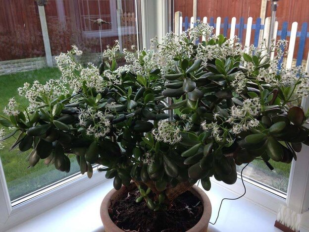 برای گلدهی گیاه یشم آن را در یک گلدان کوچک کاشته و آن را آبیاری کنید. دمای کم در زمستان گلدهی را تسریع می کند.