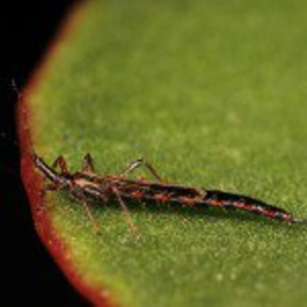 این حشرات بالدار ریز و تیره رنگ به سختی دیده می شوند. زمانی که از اسپری استفاده می کنید، تریپس ها از روی گیاه فرار کرده و روی گیاه کناری می نشینند. به همین دلیل باید گیاه آلوده را قرنطینه کنید. این حشرات با مکیدن شیره ی گیاه به تدریج خطوطی روی برگ ایجاد می کنند. (اطلاعات بیشتر درباره تریپس)