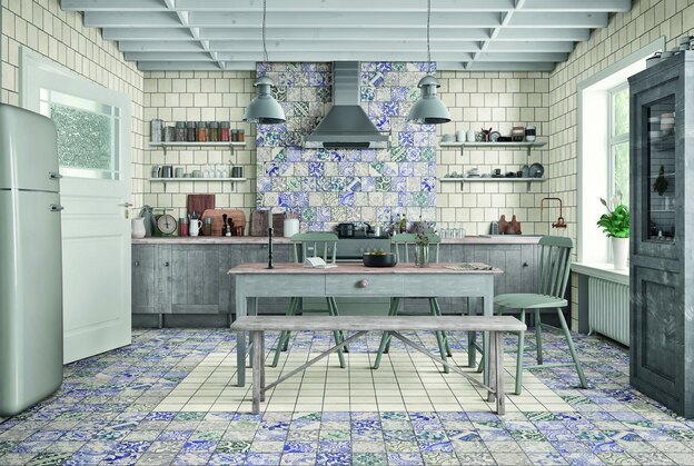 به این ترتیب، کاشی آشپزخانه بیشتر به عنوان عنصر تزیینی در نظر گرفته می شود- الگوسازی کف یک ترند بزرگ است، و به طور کلی الگوسازی با استفاده از کاشی ساده صورت می گیرد، اما تکرار یک الگو روی دیوار هم زیبا است.