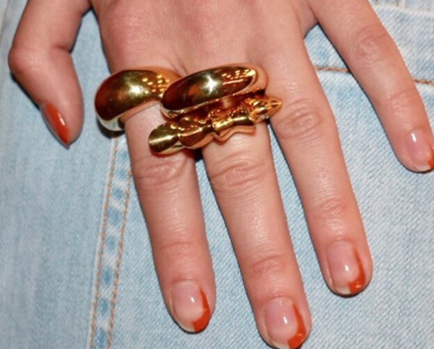 مبلین مارتین، خالق سالن ناخن کاری پینت باکس در نیویورک طراح این طرح فضای منفی در نمایش اولا جانسون است. بله، چنین طرح زیبایی همیشه مد است، اما لاک نارنجی نوک ناخن همه چیز را زیباتر می کند.