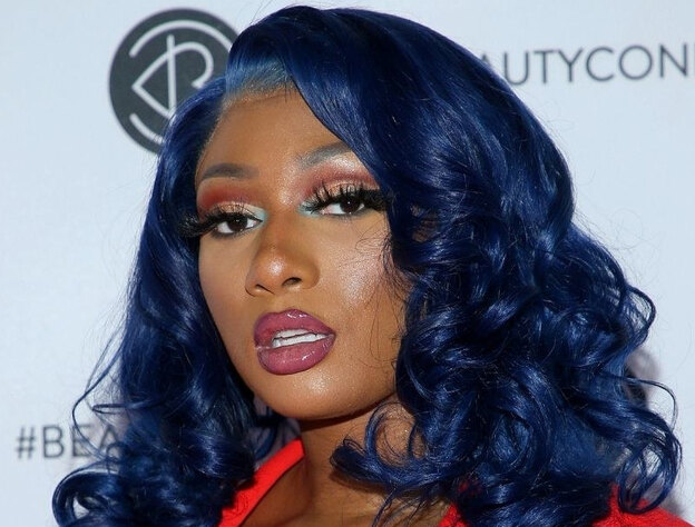 مگان دی استالیون رپر در مراسم بیوتی کان لس انجلس یک پیراهن قرمز سکسی به تن و یک کلاه گیس رنگ شب به سر داشت. فر های بزرگ و وجود لایت های روشن، جلوه ای با شکوه به مو می بخشد. این تغییر با رنگ همیشگی موی او بسیار متفاوت اما جذاب است.