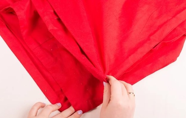 8. با چرخ خیاطی قسمت های مختلف را به هم بدوزید. به تدریج سنجاق را بردارید. از هر جایی که سنجاق ها را جدا می کنید پارچه را به هم بدوزید. پس از پایان خیاطی، روکش را برگردانید.