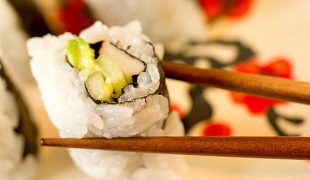 بهترین نوع برنج و جلبک برای تهیه سوشی عبارتند از برنج پخته شده در سرکه و ورقه جلبک نوری که می توانید در سوپرمارکت های مخصوص پیدا کنید.