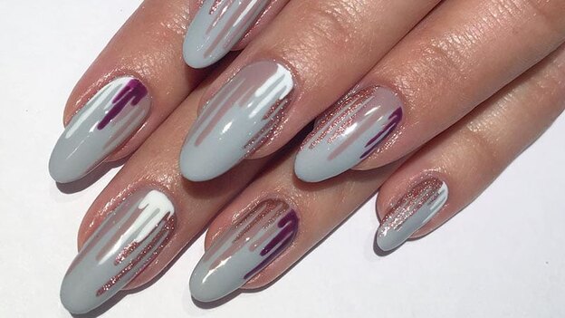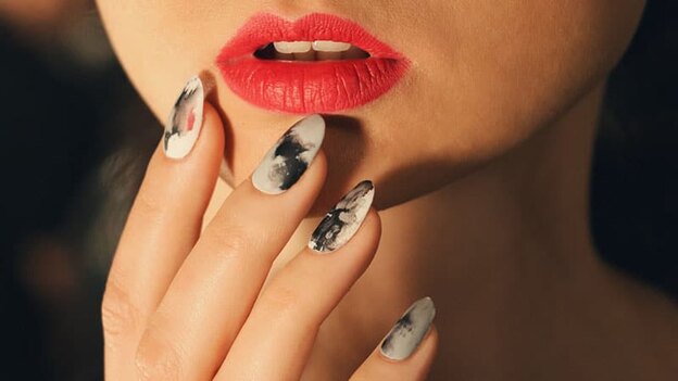 با این طرح لکه جوهری سال 2017 ناخن های هنری داشته باشید. پالت هنری و مینیمال آن هیجان انگیز و ساده است. می توانید در خانه یا آرایشگاه با تکنیک خشک کن به آن دست یابید.