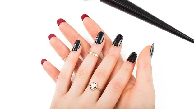 برای مناسبت بعدی به ناخن هایی اغواکننده نیاز دارید؟ می توانید با رنگ های مشکی، نفتی یا قرمر به این شعله ها دست پیدا کنید. یک طرح لوکس برای مهمانی شب.