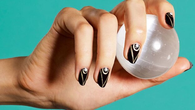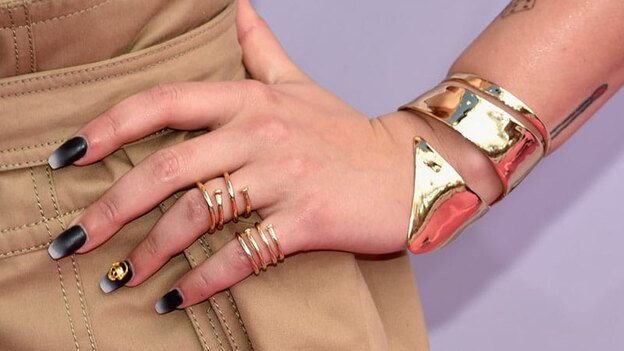 در حالی که به دنبال طراحی ناخن هستید، یادتان باشد که با افزودن انگشتر و زیورآلات می توانید زیبایی ناخن ها را بیشتر کنید. یکی از راه های دیگر خطوط و نوارهای طلایی رنگ است که ناخن هایتان را زیباتر می کند.