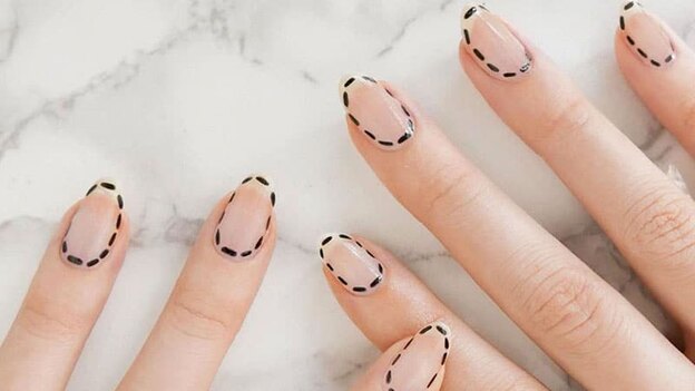 طراحی حاشیه ناخن ترند شده است، و نسخه های مختلف آن وجود دارد. در این طرح خاص حاشیه ناخن نقطه گذاری می شود. این طرح بسیار ساده و جذاب است.