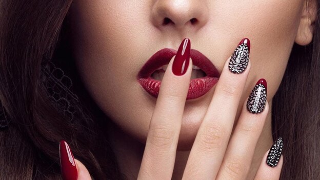 با گل میخ می توانید ناخن هایتان را زیباتر کنید. این طرح زیبا با رنگ های تیره و پررنگ، مانند شرابی، آبی، خونی و زرشکی جذاب می شود.