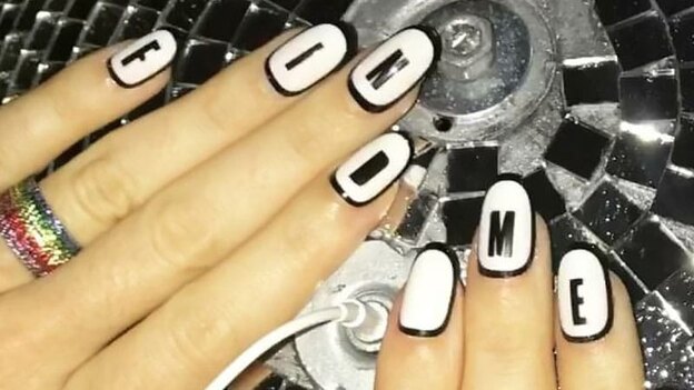 چرا از طرح سال 2017 کیتی پری الهام نگیرید و حروف را روی ناخن ها حک نکنید؟ این سبک را می توانید برای نوشتن کلمات الهام بخش استفاده کنید. مثل کیتی پری طرح Find me را انتخاب کرد.