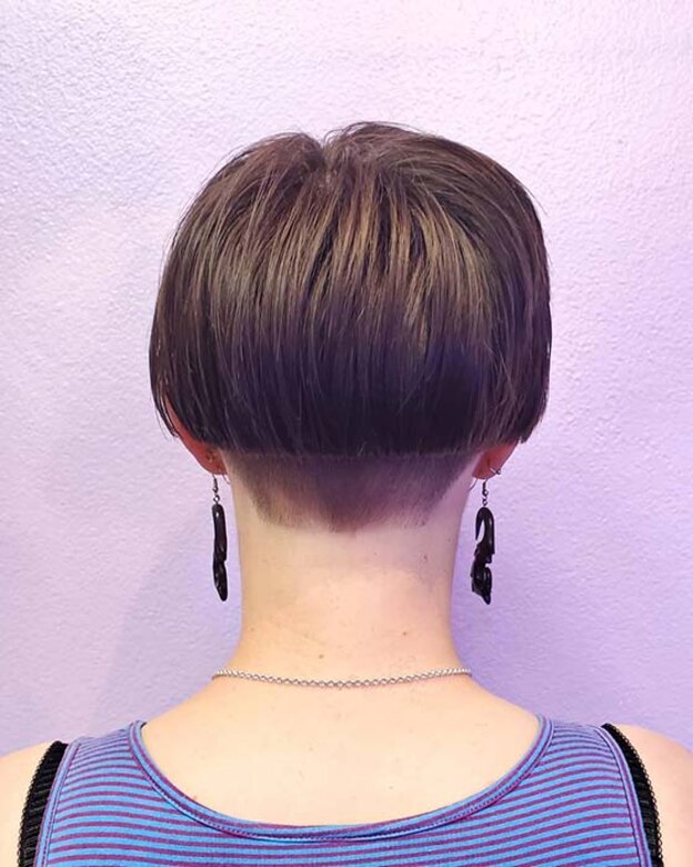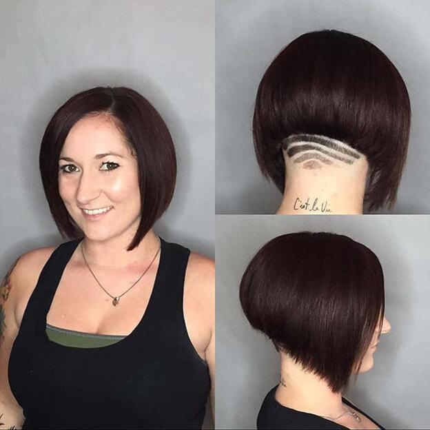ایده بعدی ما دوباره یک کوپ لخت است که تراشیدگی باحالی دارد. این تراشیدگی با راه راه هایش حرفهای زیادی برای گفتن دارد چون چه مو بالا باشد چه پایین، دیده می شود. کوتاهی وارونه را هم خیلی دوست داریم. این یک مدل موی خاص و به روز برای خانوم هایی است که می خواهند ظاهرشان تغییر کند.