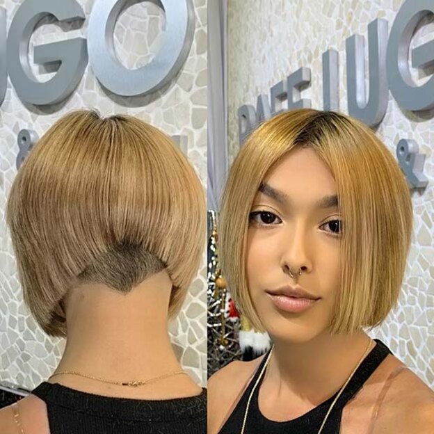 اگر تراشیدگی های طرح دار را دوست دارید، پس این را ببینید. یک کوپ بلوند صاف و خیلی خوشگل، با تراشیدگی طرحدار. ما شیفته این تراشیدگی هستیم چون طرحش خیلی شیک و آراسته است. این مدل مو به روز و باحال است و به همه می آید. می توانید این مدل را تغیر دهید و رنگش را عوض کنید.