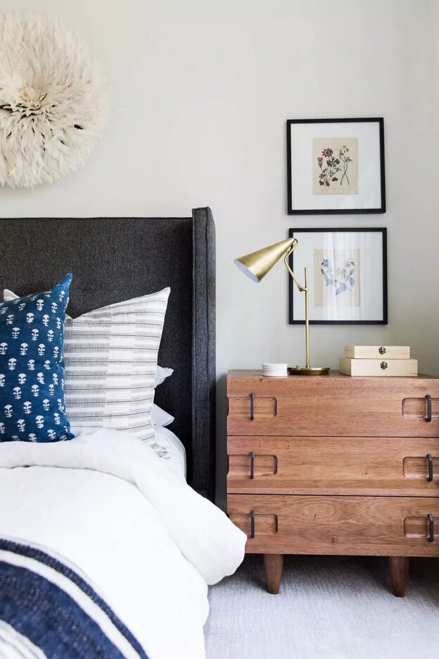 لوسترهای فانتزی فقط مختص فضاهای اصلی خانه نیستند. این اتاق خواب راحت الهام گرفته از سبک اسکاندیناویایی که توسط شرکت مارتا اوهارا ارائه شده، یک لوستر اسپوتنیک از جنس برنج و نیکل را به نمایش می گذارد. این لوستر به این فضای پر از آرامش خواب آور، کمی شیطنت می بخشد.