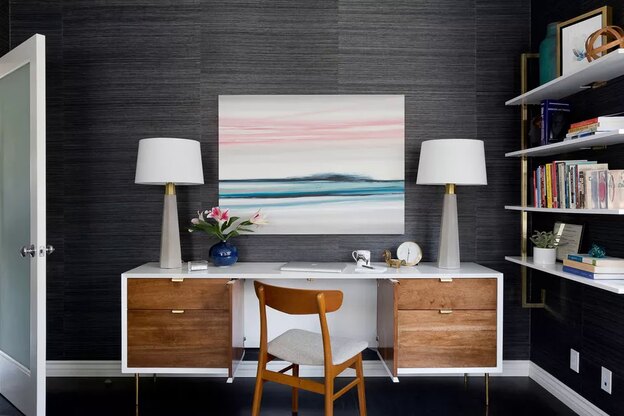 خیلی سخت می شود دکوراسیونی که اجزا در آن به هم شبیه باشند را اجرا کرد، مگر آنکه صحبت از اشیاء کلاسیکی مثل یک جفت آباژور رومیزی نیم قرنی باشد. آنها به این فضای اداری طراحی شده توسط انجلا بلت، تقارن و تعادل آورده اند.