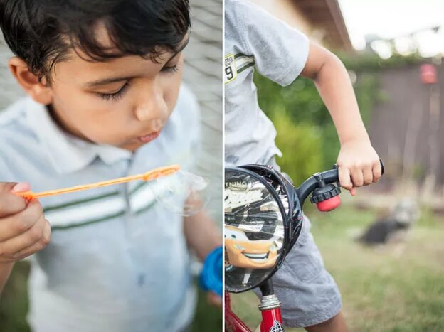 عکس برداری از پشت سر می تواند نشان دهد چقدر باد می وزد یا اینکه دریا چقدر پهناور است. اگر بچه دارد با دستهایش نقاشی می کشد، روی دستهایش تمرکز کنید. اگر دارد می دود، روی پاهایش. این کارها عکس را جذاب می کند و فعالیت های مورد علاقه بچه را به تصویر می کشد. بگذارید بچه ها کاری که دوست دارند را بکنند. این یک نکته بسیار بدرد بخور در گرفتن عکس های پرتره از کودکان است.