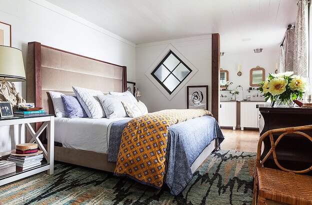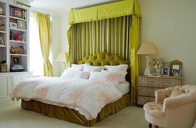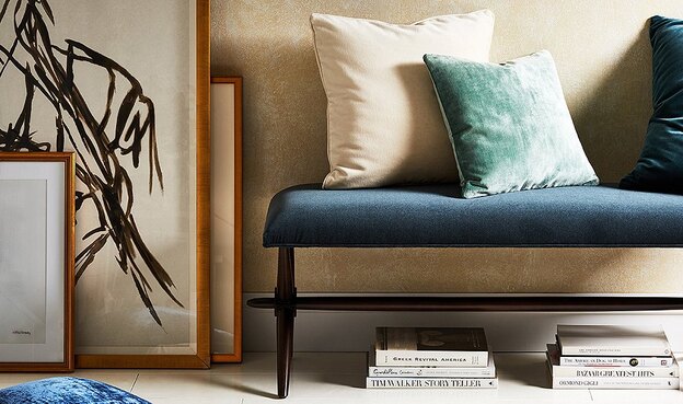 از پارچه ی مخمل، میتواند در فضاهای مردانه و یا مکان هایی که دوست داریم تا زیباتر به نظر برسند نیز میتوان استفاده نمودو در عکس فوق، کفی خاکستری مایل به قهوه ای رنگ مخملی تخت، فضای زیبایی را ایجاد و امکان استفاده از طیف های مختلف رنگ آبی و سایر بافت ها و رنگ های آرامشبخش را فراهم نموده است. همچنین ظاهری بسیار مرتب و تمیز به فضا بخشده است.