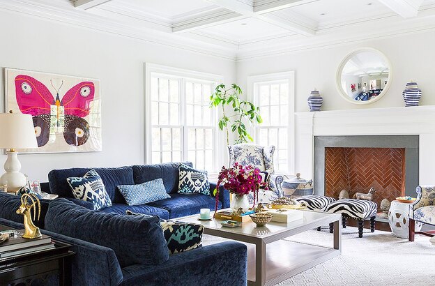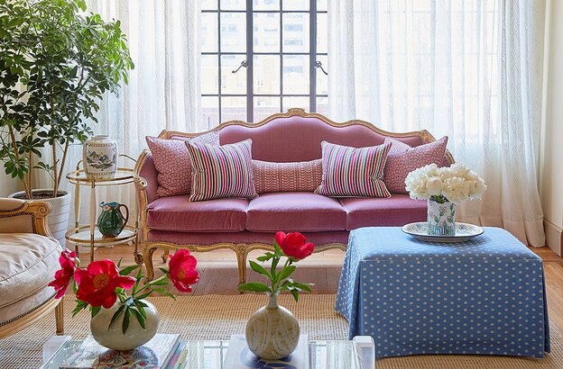 از مبل های سه نفره گرفته تا مبل های تک نفره، میتوان از پارچه های مخملی استفاده کرد تا به فضا تازگی و طراوت بخشد. طیف های مختلف رنگ پارچه ی مخمل، هر کدام زیبایی خاص خود را دارد. در عکس فوق، مبل سه نفره ی بنفش رنگ با رنگ های دیگری از همین طیف هماهنگ شده تا به فضا حس تازگی و سبکی ببخشد.
