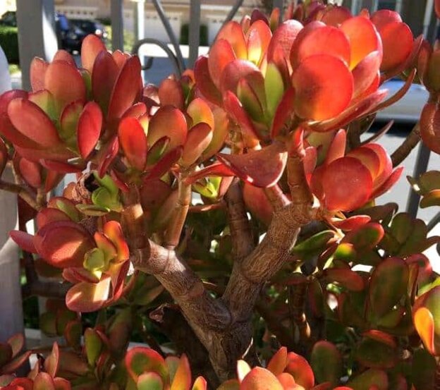 - درخت یشم قرمز (کراسولا اوواتا کالیفرنیا رد تیپ): اگر این نوع در معرض تابش مستقیم آفتاب رشد کند، نوک برگ هایش قرمز مایل به بنفش می شوند.
