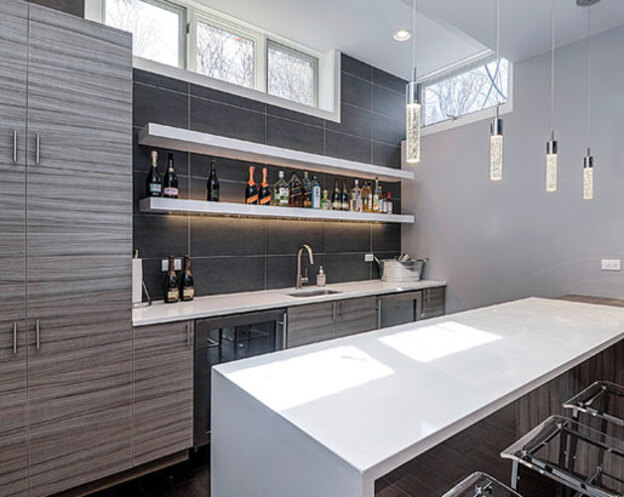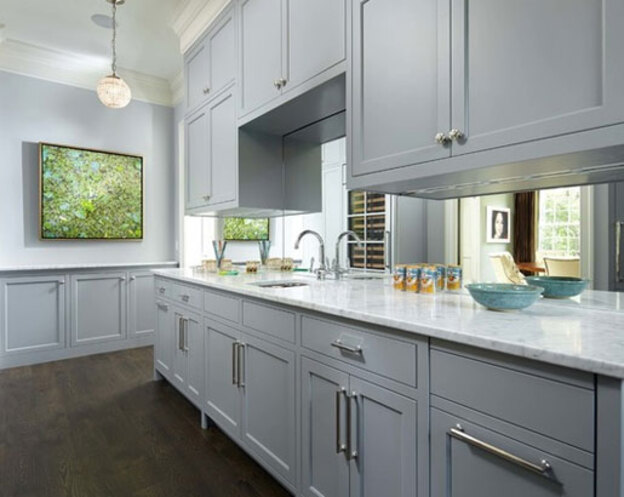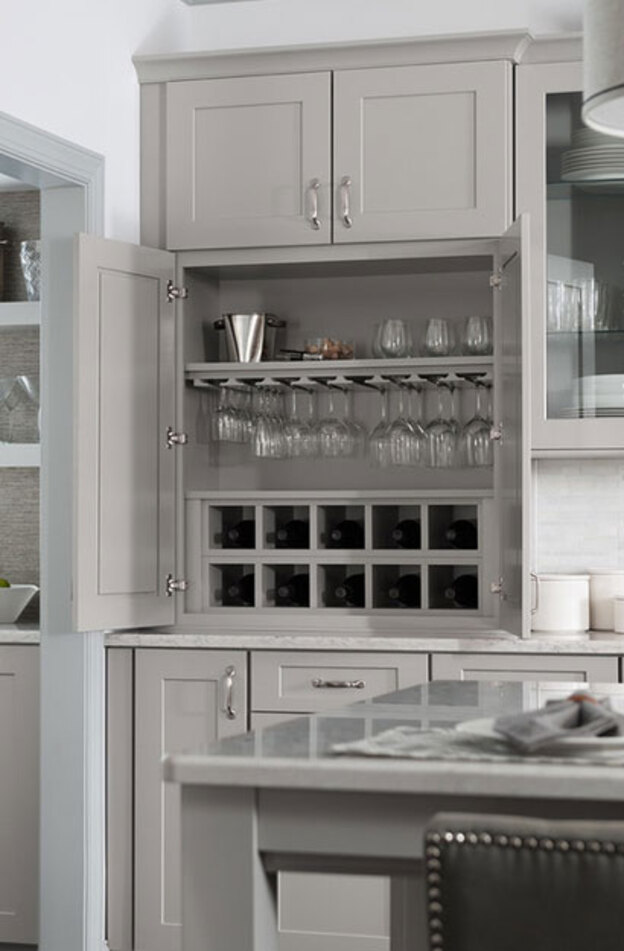 این کابینت خاکستری ایده خوبی برای نگه داشتن شراب است.