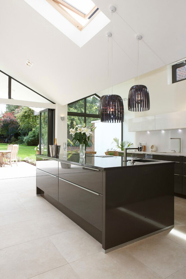 کابینت های تیره در برابر دیوار سفید تضاد ایجاد کرده و کل این ترکیب در کنار هم شگفت انگیز شده است.