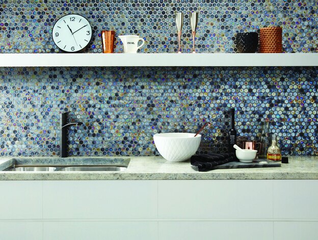 رنگ هم عامل مهمی است: استفاده از ترکیب رنگ هایی که بین کاشی ها و وسایل آشپزخانه به تناسب تقسیم شوند، باعث ایجاد انسجام می گردد. اگر دستگاه هایتان سفید هستند، از موزایک های روشن روی دیوار پشت سینک و گاز استفاده کنید تا طراحی مخصوص به خودتان را داشته باشید.