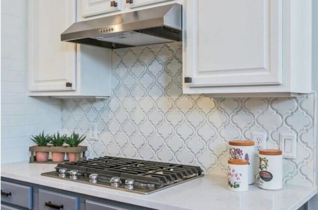 این کاشی سرامیکی همه جای دیوار پشت سینک و کابینت های آشپزخانه را پوشانده است.