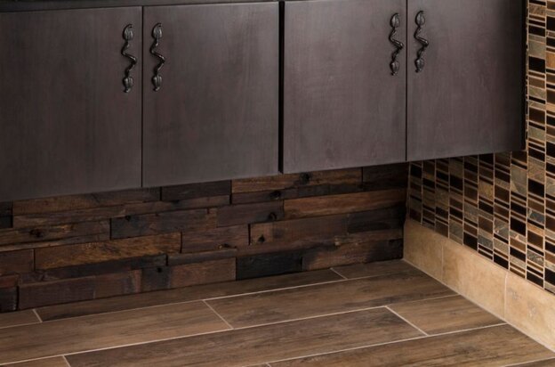 ما شیفته این کاشی های دیواری چوبی شده ایم که حجم زیادی از جذابیت و شخصیت به آشپزخانه هدیه می دهند.
