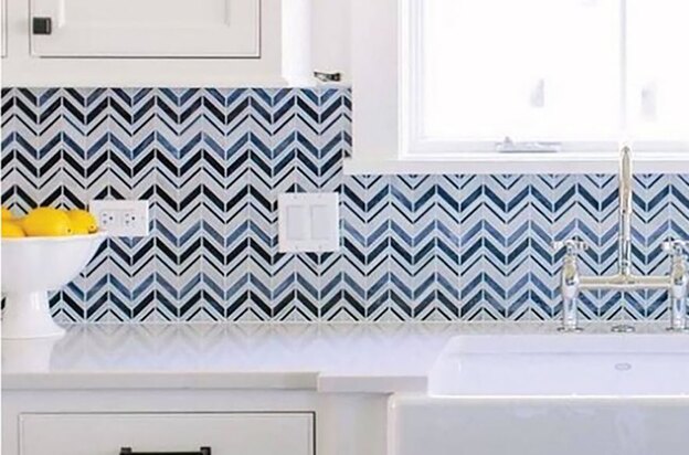 دیوار پشت سینک مکانی ایده آل برای اضافه کردن الگوهای متفاوت و چشم نواز هستند که با بقیه آشپزخانه فرق داشته باشد.