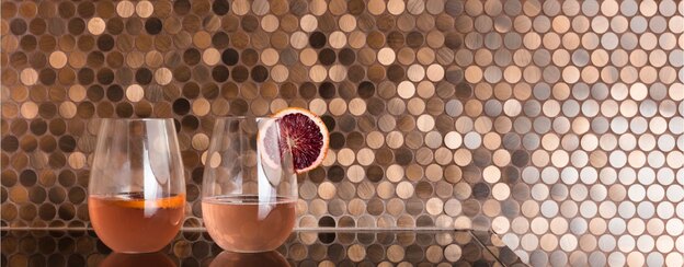 - کاشی های مسی و فلزی نصب کنید –مثل این الگوی دایره ای، تا دیوارتان به عنصری چشم نواز و مهم در خانه تان بدل شود.