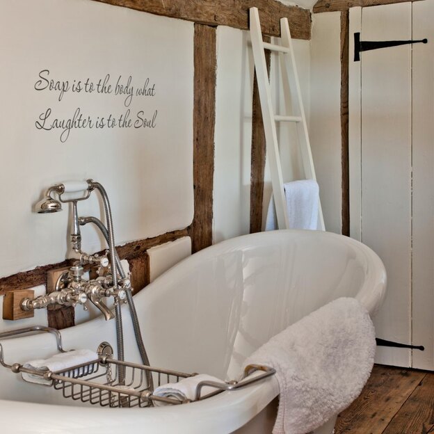 به دنبال یک وان حمام ساده باشید. این نوع وان در یک فضای کوچک می تواند نقطه ی آرامش بخشی باشد. آنها به بزرگی ای که فکر می کنید نیستند و شما حتی می توانید مدل کوچکتری را خریداری کنید که در فضای کوچک شما جای بگیرد. یک استنسیل زیبا بر روی دیوار بالای اضافه کنید که به فضا زیبایی ببخشد.