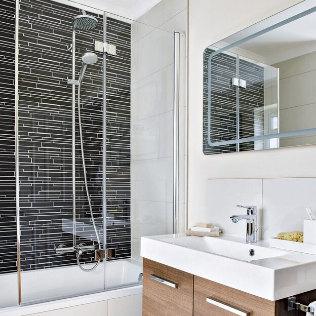 هنگامی که فضا کم است ، از دوش های با ارتفاع بلند استفاده کنید تا بهترینهای دو جهان را به شما ارائه کند. به جای اینکه دوش را در قسمت کوتاه حمام قرار دهید، آن را برای ایجاد حس لوکس تر در ارتفاع بیشتری قرار دهید. از یک طرح کاشی جسورانه تر در اطراف دوش برای ایجاد تضاد با باقی اتاق حمام استفاده کنید.