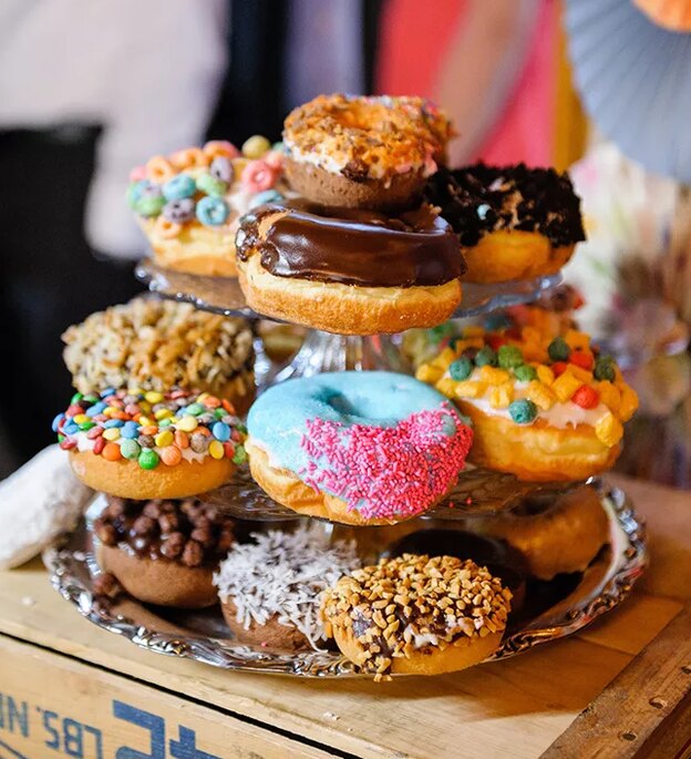 دسر عروسی خود را با مقداری دونات لذیذ و شیرین تکمیل کنید.