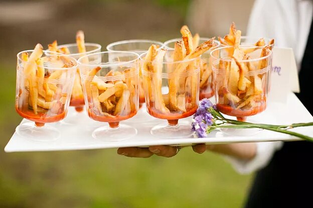 یک لیوان کوکتل را با سس کچاپ غوطه ور در پایین و از بالا با سیب زمینی سرخ شده پر کنید. حمل و نقل برای مهمانان آسان است بدون ایجاد کثیفی و به هم ریختگی.  (به علاوه ، چه کسی سیب زمینی سرخ شده دوست ندارد؟)