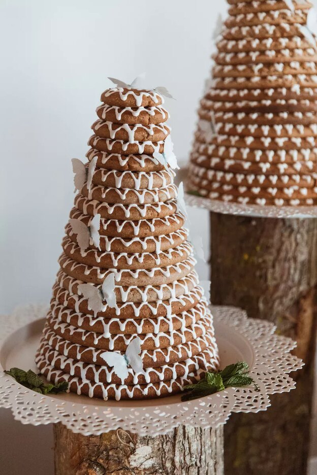 اخیرا استفاده از کیک های عروسی سنتی دیگر فرهنگ ها بسیار زیاد شده است- کیک بالا یک کیک سنتی اسکاندیناوی به نام کرنس کیک است. ما همچنین در سالهای اخیر میلفوگیل (کیک سنتی ایتالیایی توت فرنگی با خامه قندیلی) را زیاد در بین کیک های عروسی دیده ایم.