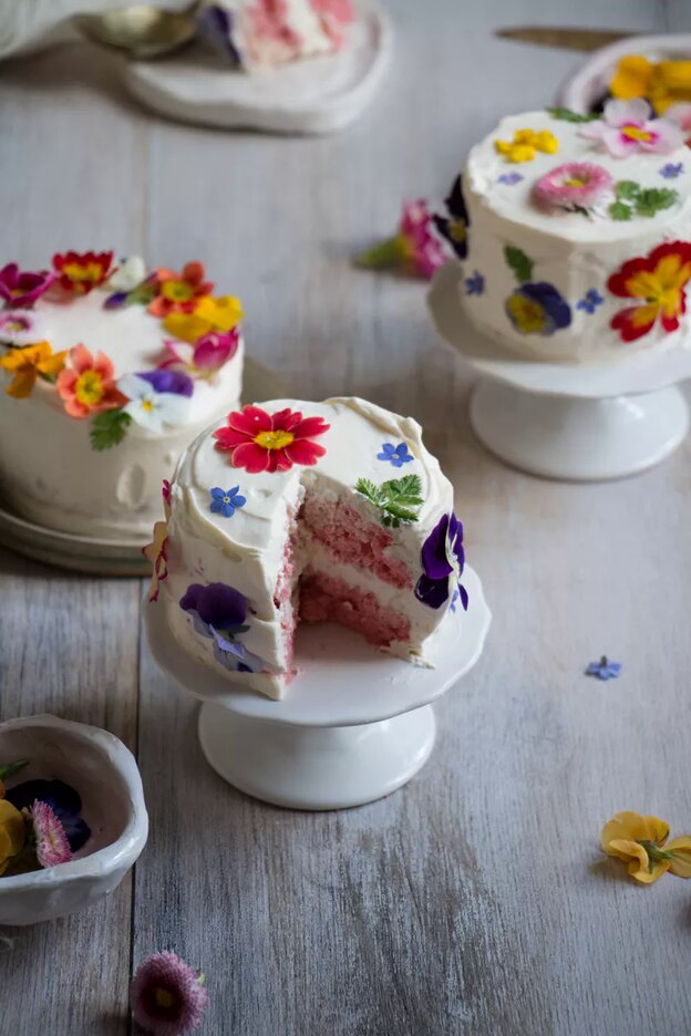 ما عاشق ظاهر گل های قابل خوردن هستیم- خصوصا وقتی مانند بالا تزیین می شوند- وقتی حالتی دو بعدی دارند. آنها شبیه به گل های فشرده شده به نظر می رسند که هم نوستالژیک و هم جدید به نظر می رسند.
