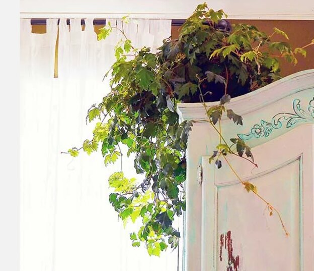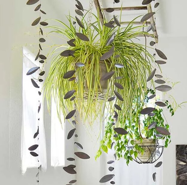 گلی راحت تر و بی دردسرتر از گل عنکبوتی برای نگهداری در آپارتمان وجود ندارد.(Chlorophytumcomosum) این گیاهان کمبود نور را تاب آورده و به کمترین رطوبت قانع اند. جوانه های کوچک این گیاه ( که می توان آنها را جدا کرد و قلمه زد) بسیار زیاد هستند. در این عکس یک یک نردبان کهنه را می بینید که به عنوان آویز گلدان ها روی وان حمام استفاده شده است. گلدان عنکبوتی جلوی عکس به چشم میخورد. (این گل ها در سبد های آویز بسیار زیبا هستند) پشت گلدان عنکبوتی، گل عروسک چینی قرار دارد (Radermachera sinica) این گل به نور غیرمستقیم خورشید، خاک زه کشی شده و گلدان سوراخ دار است. این دو گل در گرما و رطوبت حمام به خوبی رشد می کنند.