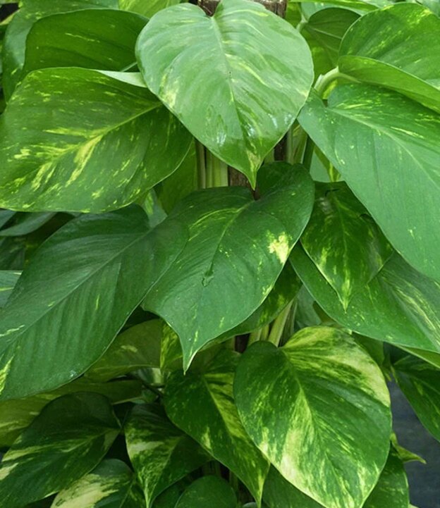 اینگونه از Epipremnum aereum دارای برگ های براق و روشنی است که موجب می شود نتوانید به آنها خیره شوید. همه ی گونه های پوتوس از خاصیت تمیز کردن هوا برخوردارند. این گیاهان فرمالدهید و مونوکسید کربن هوا را از بین می برند.