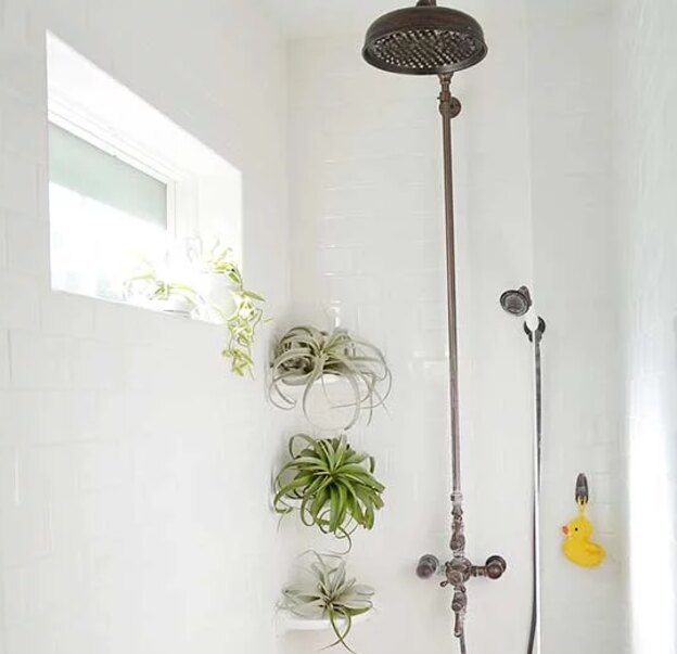 این گیاهان از انواع بروملیوم بوده و به گیاهان هوایی معروف هستند. گونه هایی که ژن آناناس گرمسیری را دارا هستند(صدها گونه ی مختلف از این گیاه وجود دارد) به دلیل عدم نیاز به خاک و کاشته شدن بسیار محبوب شده اند. در صورت مساعد بودن شرایط این گیاه به هیچ نوع مراقبتی نیاز ندارد. حتما می پرسید که چطور می توان شرایط مساعد جنگل های آمریکا را فراهم کرد؟ درست حدس زدید. حمام. چه بهتر که اگر حمام شما به دوش و شیشه های روشن مجهز باشد. این گیاهان به قطرات دوش و جذب رطوبت علاقه دارند. اگر رطوبت محیط گیاه تان کافی نیست، می توانید با آبپاش آن را آبیاری کرده و یا هر چند هفته یک بار گیاه را زیر آب ببرید. ( میزان آبیاری به میزان خشکی آب و هوای محل زندگی بستگی دارد.) گونه ها رایج این گیاه Tillandsia xerographica, (همان که در عکس میبینید) Tillandsia bergeri, Tillandsia ionantha می باشد.