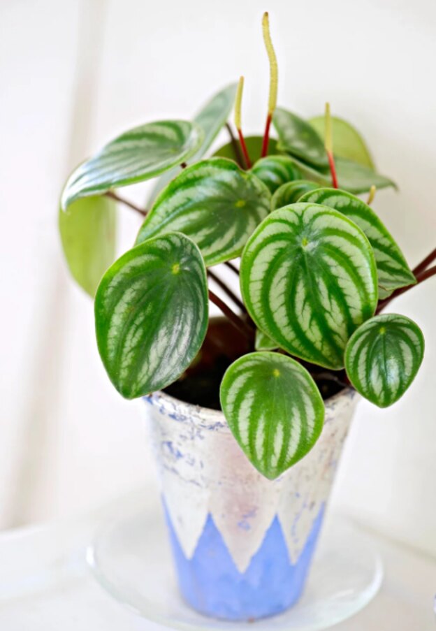 این گل کوچک به نور کمی نیاز داشته و در رنگ ها و برگ های متفاوتی یافت می شود. این گیاه کوچک را می توان در فضاهای کوچکی همچون تاقچه ها قرار داد. (پپرومیا به نور مستقیم نیاز ندارد.) این گونه ی راه راه، پپرومیای هندوانه ای یا Peperomia argyreiaنامیده می شود.