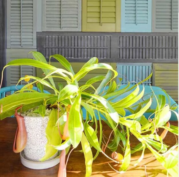 این گیاه با نام جام میمون یا Nepenthesنیز شناخته شده و گونه ی متمایزی از گیاهان استوایی است که ویژگی بخش کوزه ای را مشترکا دارا هستند(گلی که در عکس میبینید Nepenthes alata می باشد). این گیاه از طریق بخش کوزه ای و مایع درون آن، حشرات را جذب و از آنها تغذیه می کند. بر خلاف تفکر عموم، این گیاه نیازی به تغذیه از طریق انسان ندارد. منزل شما غذای کافی را در اختیار آن قرار می دهد. پارچ گیاه خاک و هوای مرطوب حمام را دوست دارد. این گل رطوبت کم را تاب می آورد اما کوزه های کمتری تولید می کند. ساقه های این گل موجب زیبا تر شدن تاقچه هایتان خواهند شد.